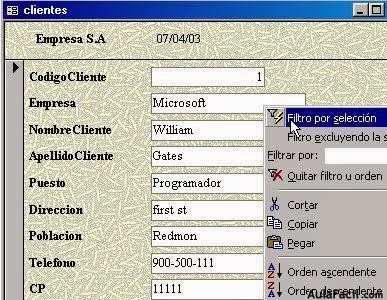 tabla y pulsando el botón derechoLos filtros tienen otra función que no tiene tanto que ver con su nombre como la anterior. Los filtros también pueden utilizarse para ordenar los registros de una tabla.